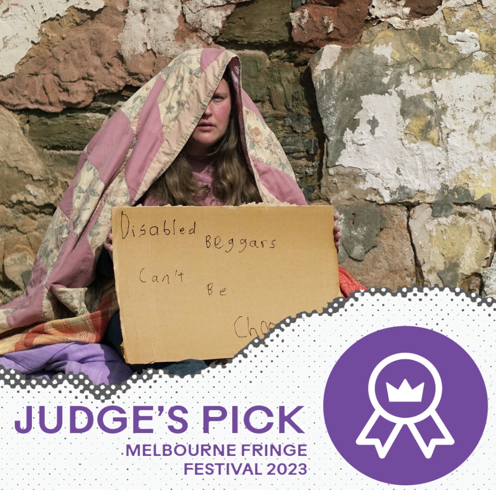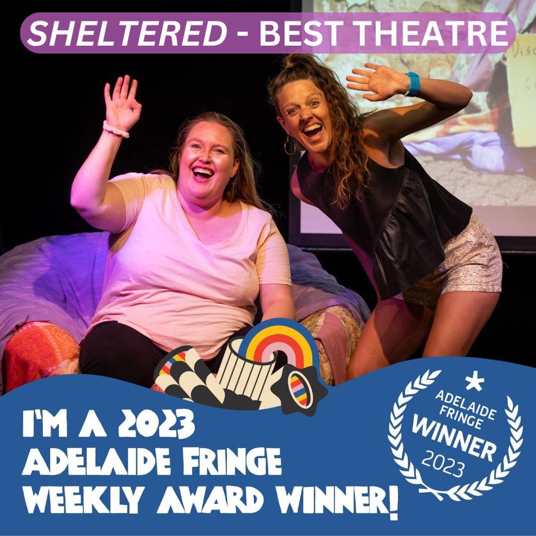 Her critically acclaimed one-woman show, Sheltered, is an autobiographical rollercoaster that masterfully blends comedy, drama, puppetry, and a special quilt. The production takes audiences on a journey through Kathryn’s experiences of finding adulthood in a youth shelter while navigating life with cerebral palsy. First performed at the Adelaide Fringe in 2022, Sheltered continued to evolve, earning the Best Theatre Award during Adelaide Fringe Week One in 2023, as well as the coveted Adelaide Fringe Access Award.